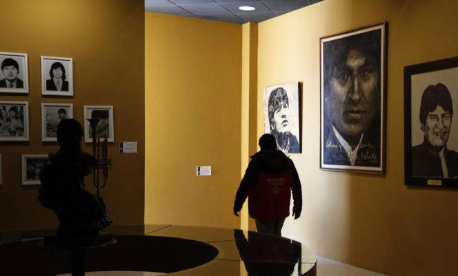 Evo Morales, es un admirador del Che Guevara, la hoja de coca y de su propia figura, plasma todo este aprecio en una serie de cuadros que se distribuyen a lo largo y ancho del museo.