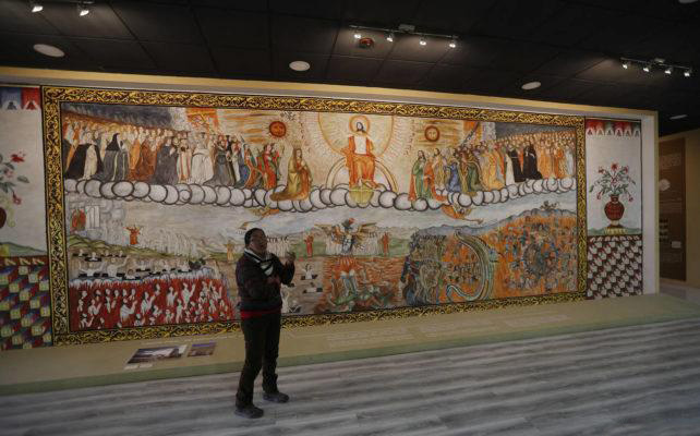 Un guía del museo, dotado de carisma, detalla minuciosamente cada cuadro y objeto exhibido. No obstante, cuestionar de manera crítica al guía podría desencadenar una respuesta en la que se defiende la construcción de este museo.