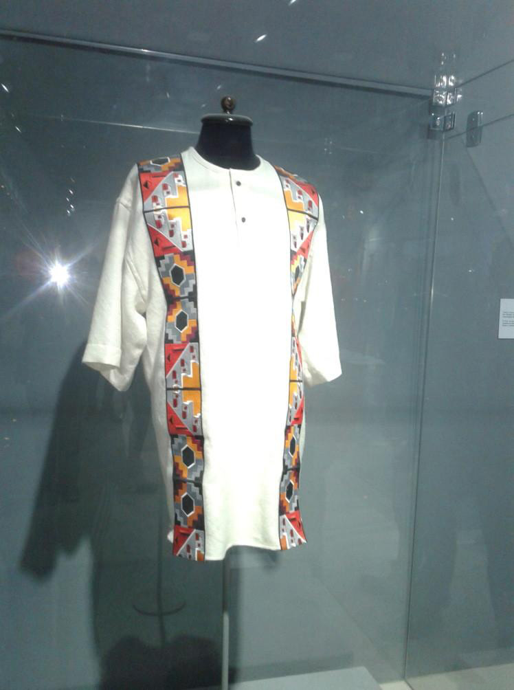 Resguardada cuidadosamente en una vitrina, se exhibe la túnica que Evo Morales vistió durante su ceremonia de posesión en Tiwanaku., en que rayos estaban pensando.