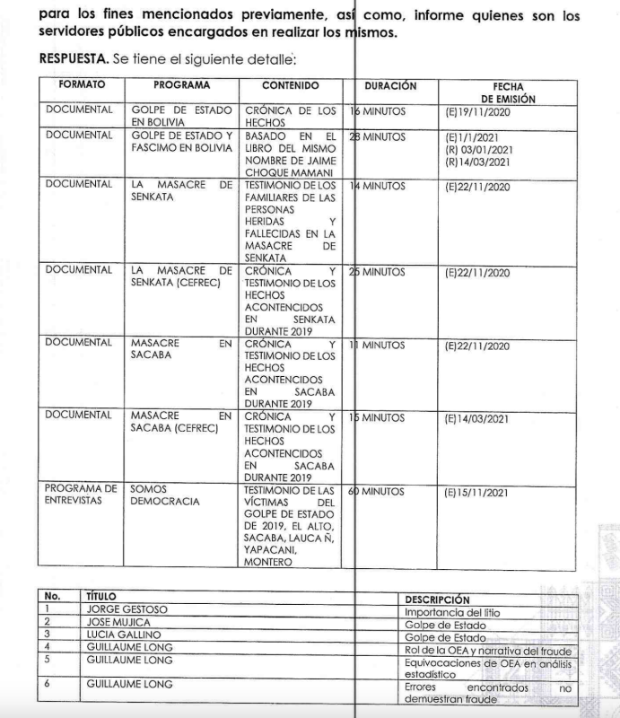 La segunda parte del libro incluye informes de organismos de derechos humanos nacionales e internacionales que documentan las violaciones de derechos humanos durante el supuesto golpe y sus consecuencias. Además, ofrece artículos de prensa, comunicados y testimonios que describen la represión, los medios en los que Choque fundamenta su libro son principalmente medios estatales.